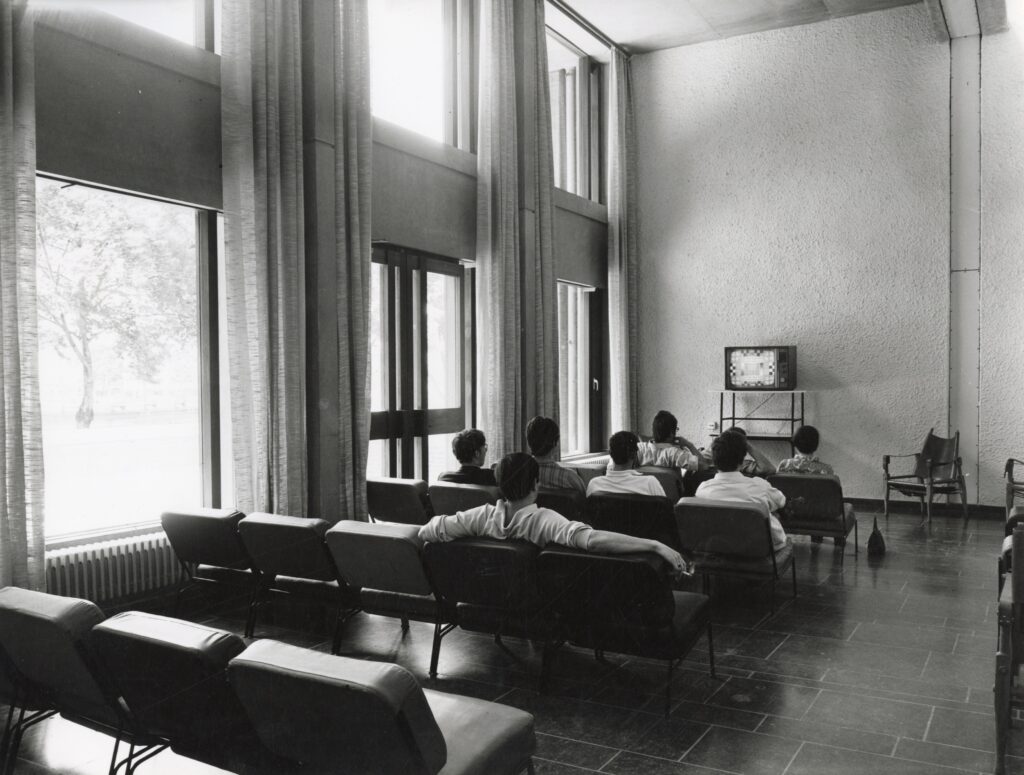 Le mobilier destiné aux bureaux et logements témoigne également d’une attention particulière. Les bureaux seront équipés de mobiliers signés Knoll, Wabbes et Jacobsen tandis que Vandenhove conçoit les chaises, tabourets, et bureaux destinés aux appartements des étudiants.
